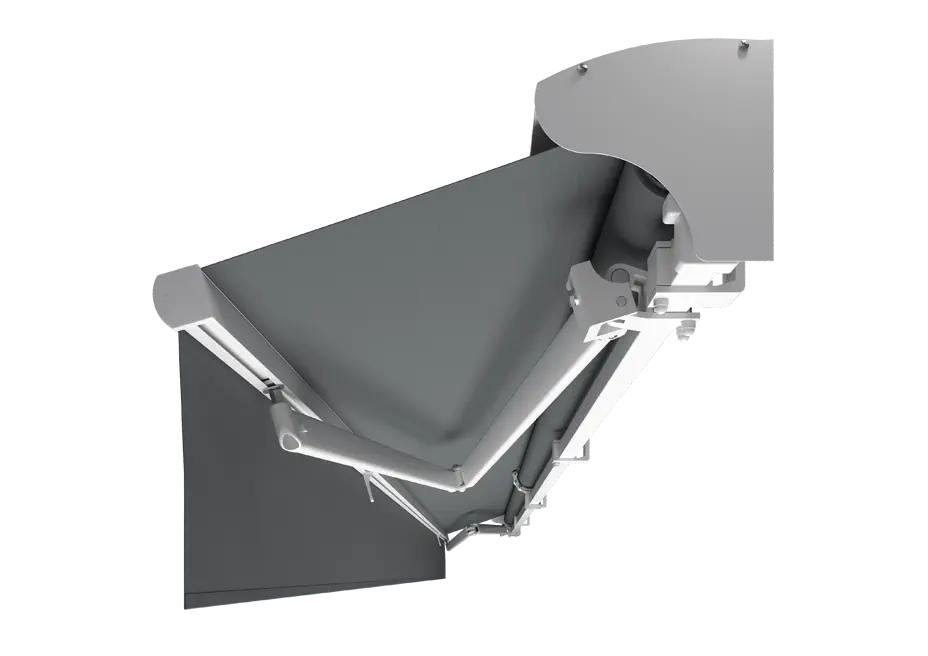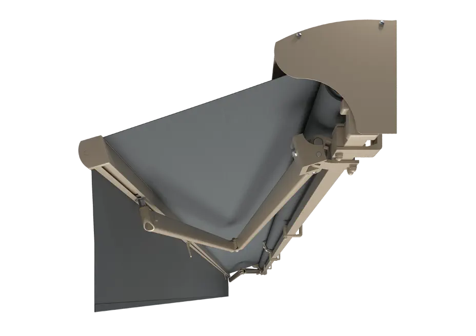 Den er utviklet for å tåle intensiv bruk og gir optimal beskyttelse mot sol og lett regn. Den robuste konstruksjonen og kraftige markisearmer sikrer at duken alltid har perfekt spenn, og det forsterkede duk røret gir ekstra stabilitet.
