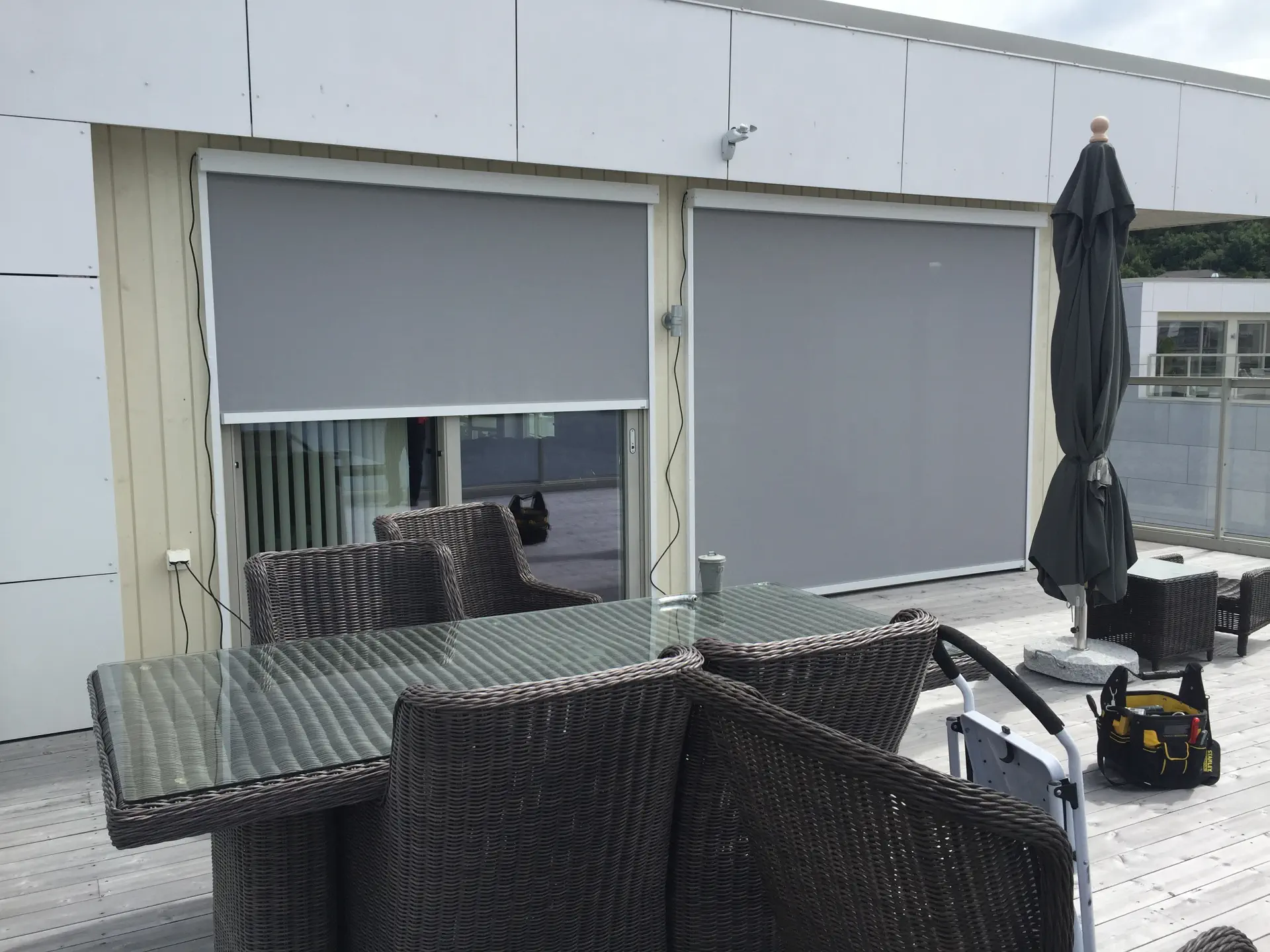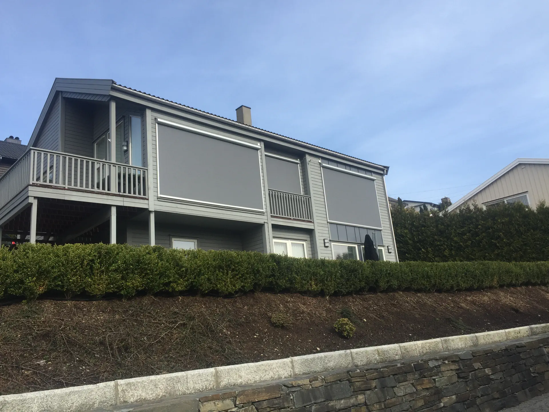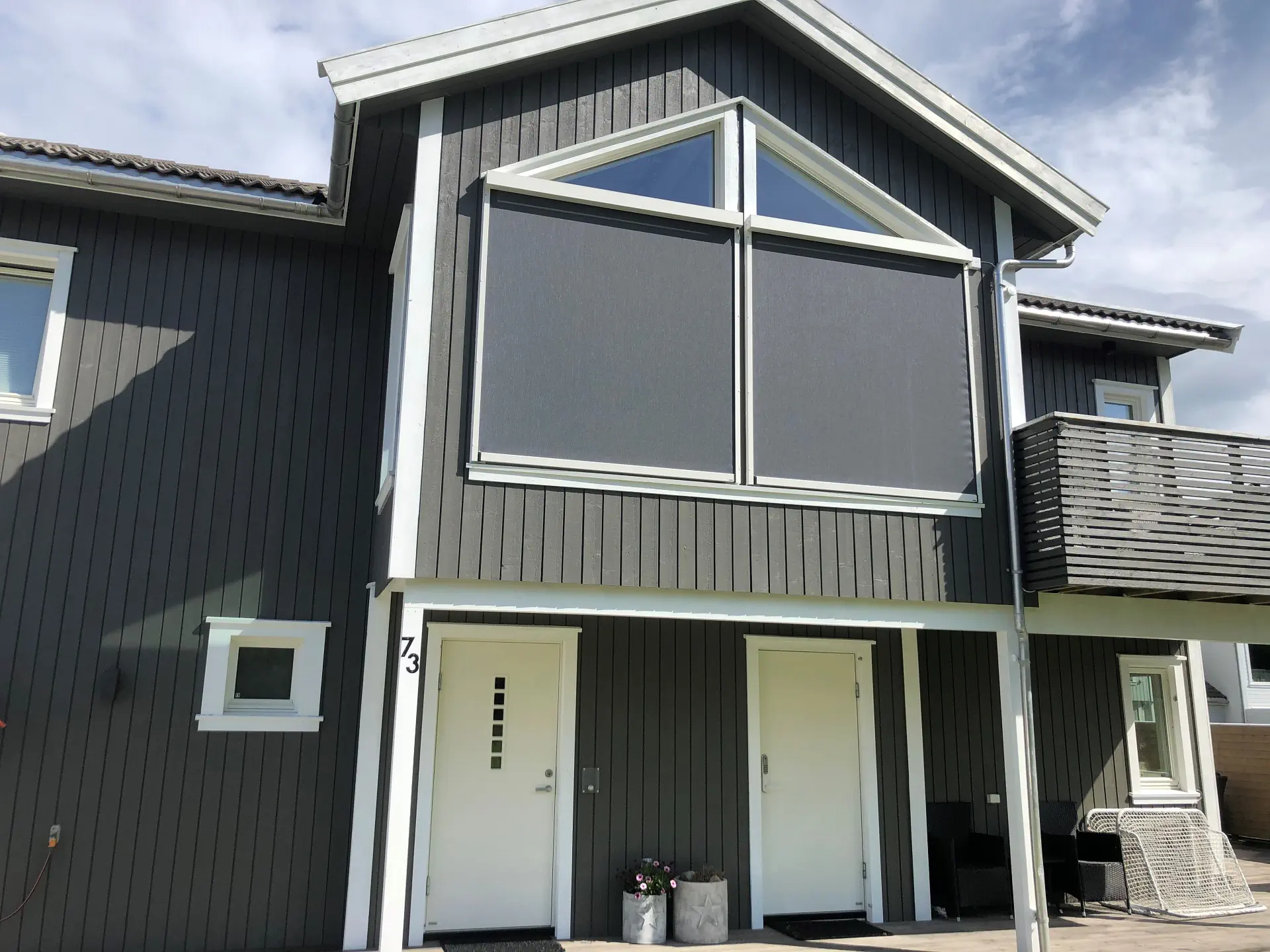 Fasaden er en del av helhetsinntrykket av boligen eller bygget. En kvalitetsduk beholder farge, struktur og stramhet over tid, slik at screensystemet ser like pent ut etter mange års bruk.